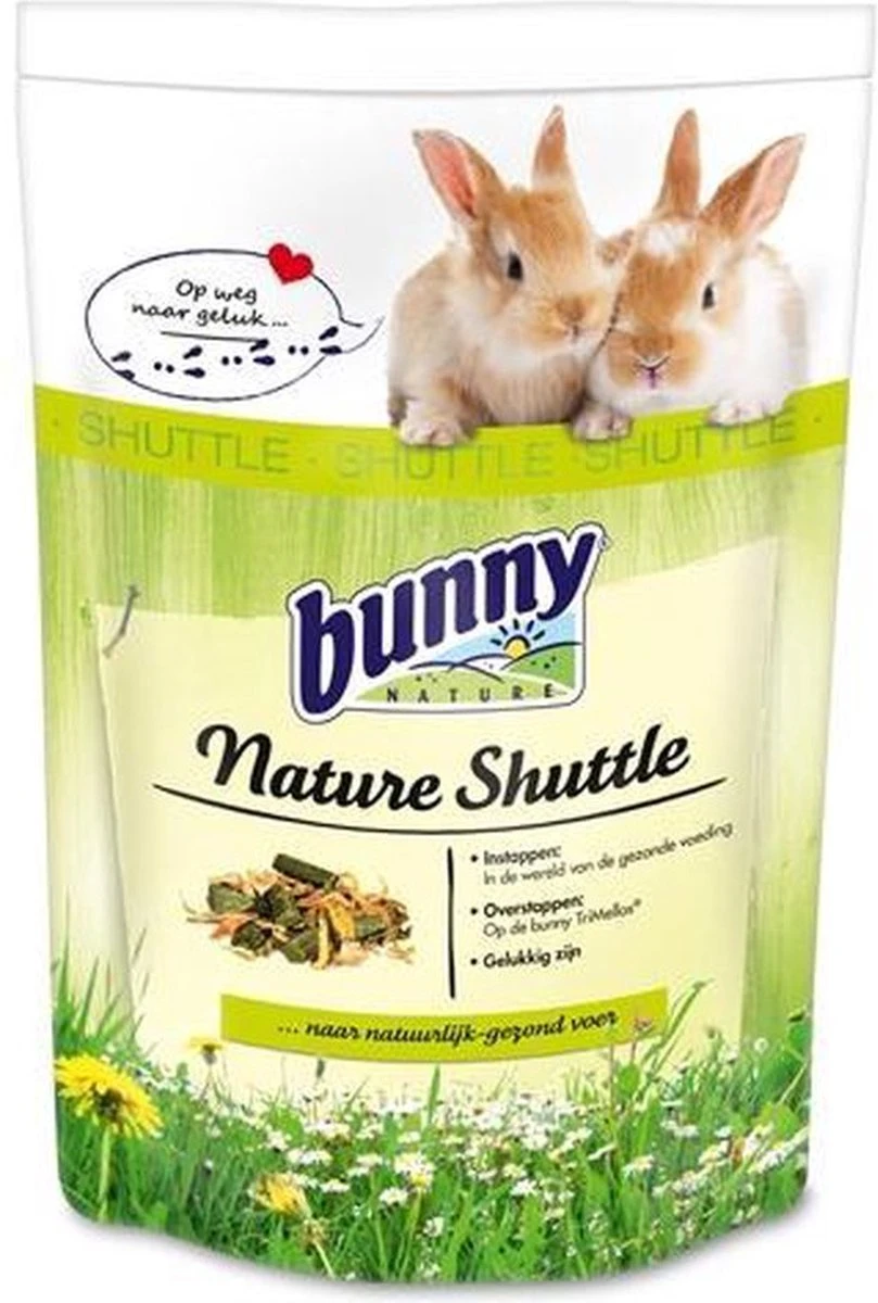 Veel huisdieren krijgen uit onwetendheid voeding die niet op hun soort is afgestemd. Het voer bevat vaak te veel calorieën en suikers. Bunny Nature Shuttle helpt de dieren om terug over te stappen op een natuurlijke, gezonde en afgestemde voeding. Vul de voerbak met Bunny Nature Shuttle en wacht tot al het voer is opgegeten, vóór het weer te vullen. Geef dagelijks hoogwaardig bunny hooi en vers, handwarm water. Nadat deze verpakking op is, over gaan op RabbitDream BASIS of HERBS. Waarom overstappenKonijnen zijn van nature uit pure planteneters. Hun hele fysiologie – van de tanden tot de darm – is daarop ingesteld. Toch krijgen jammer genoeg nog te veel konijnen te calorie-/energierijke en suikerhoudende voeding te eten. En als ze voor een langere periode geen afgestemd voer krijgen, duiken al snel diverse ziekten op die met hun voeding te maken hebben. Hele graankorrels, tuinbonen, erwtenvlokken, etc. staan bv. helemaal niet op hun natuurlijk menu. Sommige mixen zien er zo wel gevarieerd en kleurrijk uit, maar toch zijn ze niet altijd even gezond voor onze lievelingsdieren. Dus waarom zouden we hen zo moeten blijven voeren? Overschakelen op een gezond, plantaardig menu is nu zeer makkelijk. Samenstellingaanplant van blijvend grasland (doddegras, zwenkgras, Grote vossenstaart, engels raaigras, roodzwenkgras, veldbeemdgras, kropaar, honinggras, eenjarig beemdgras, wit struisgras, reukgras, kweek, smeel, rietgras, witte klaver, rode klaver, paardebloembladeren, duizendbladkruid, smalle weegbree, karwij, fluitenkruid, moerasspirea, gewone hoornbloem, walstro, heidebloem-ereprijs, heggewikke, smeerwortel, akkervederdistel, hondsdraf, madeliefjes, gamanderereprijs, vrouwenmantel, grote pimpernel, smalbladige wikke, knolsteenbreek, voorjaarsvingerkruid, akkerereprijs, vroegeling, herfstpaardenbloem, rood struisgras, sleutelbloem, kleine klaver), gerst, tarwezemelen, haferzemelen, zonnebloemextractieschroot, wortelpulp, lijnzaadextractieschroot, wortels, pastinaken, lignocellulose, cichoreiwortel, pepermuntblaadjes, aalbesbladeren, goudsbloembloesem, calciumcarbonaat, bierbostel, st. jansbrood, biergist, camillebloesems, inuline Analytische bestanddelenruw proteïne 12,7 %, ruwe oliën en vetten 2,1 %, ruwe celstof 18 %, as 8,5 %, calcium 0,6 %, fosfor 0,4 %, natrium 0,18 % Toevoegingenvitamine A 10.000 IE, vitamine D3 700 IE, vitamine E / alle rac-alpha-tocoferylacetaat 60 mg, koper als koper(II)-sulfaat, pentahydraat 6 mg, jodium als calciumjodaat, hexahydraat 0,9 mg, ijzer als ijzer(II)sulfaat, monohydraat 50 mg, zink als zinkoxide 60 mg, mangaan als mangaan(II)-oxide 40 mg, seleen als natriumseleniet 0,18 mg Stap in de wereld van gezonde voeding. Stap over op Bunny voeding en maak jouw huisdier gelukkig.