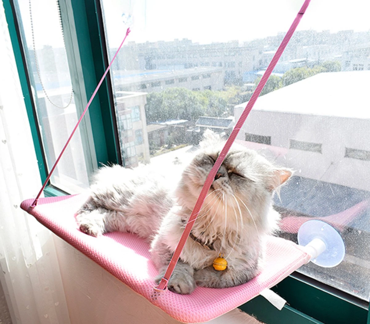 Verwen jouw geliefde kat met ons Luxe Zuignap Hangmat Nest! Deze stijlvolle roze hangmat is de perfecte keuze voor jouw kat om te ontspannen en te genieten van het uitzicht op de wereld.