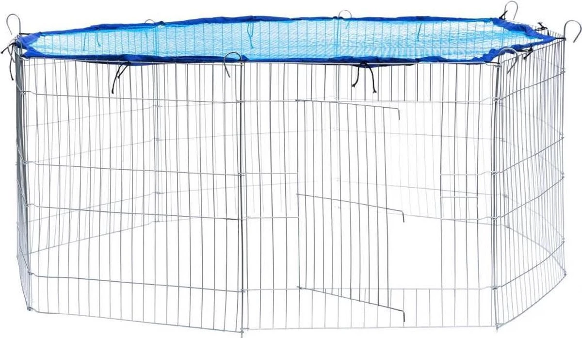 Met de weerbestendige kooi voor vrije uitloop met veiligheidsnet van tectake kunnen je kleine dieren zonder problemen van de mooie dagen in de natuur genieten. De uit 8 rasterelementen bestaande kooi biedt voldoende plaats om rond te huppelen. Het veiligheidsnet beschermt tegen ontsnappingspogingen, ongewenste gasten zoals katten of roofvogels en vallende voorwerpen. De grote deur biedt eenvoudig toegang tot de dieren. De montage zelf is heel eenvoudig en duurt slechts enkele minuten. Het steeksysteem kan in een vorm naar keuze gevarieerd worden en naar believen uitgebreid worden. Maak een aantrekkelijke feel good vakantieparadijs voor je kleine lievelingen met de kooi voor vrije uitloop met veiligheidsnet van tectake.