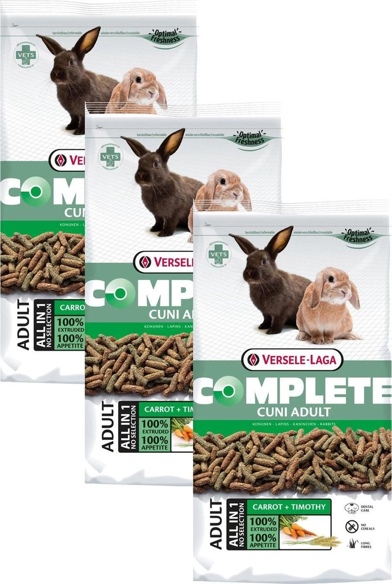 All-in-one – geen selectief eetgedrag mogelijk. Zonder granen. Bevat lange vezels o.a. timothyhooi, optimaal voor de tanden. Verrijkt met wortelen en kruiden voor een goede opname en vertering.