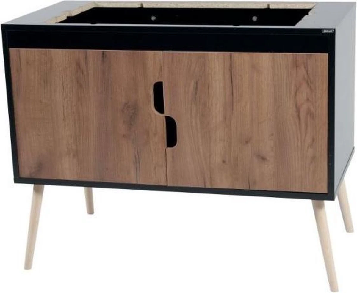 De Zolux Kast Voor Neo / Nevo Kooi Zebrano Zwart / Walnoot 98 x 50 x 77 cm is een speciale kast voor de Zolux Nevo kooien. Deze stevige kast in Scandinavische stijl laat jouw knaagdierkooi geheel opgaan in het interieur! De kast heeft een speciale opening aan de bovenzijde, die ervoor zorgt dat de onderbak van de kooi in de kast verzinkt raakt. Zo heb je mooi zicht op het belangrijkste deel van de kooi, namelijk de bovenkant, en wordt de bodembedekking aan het zicht ontrokken. De kast is voorzien van twee deuren zodat er spullen uit het zicht in kunnen worden opgeborgen, en je toch altijd alle spullen voor jouw dier bij de hand hebt. De houten poten zorgen voor een beter overzicht voor jouw dier, een beter zicht op de kooi én minder toch. Maak jouw Neo of Neo Kooi af met deze mooie, stijlvolle kast!